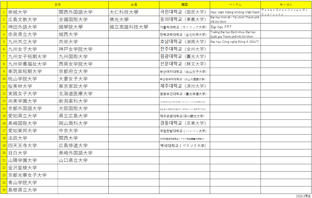 海外協定校(MOU締結先)